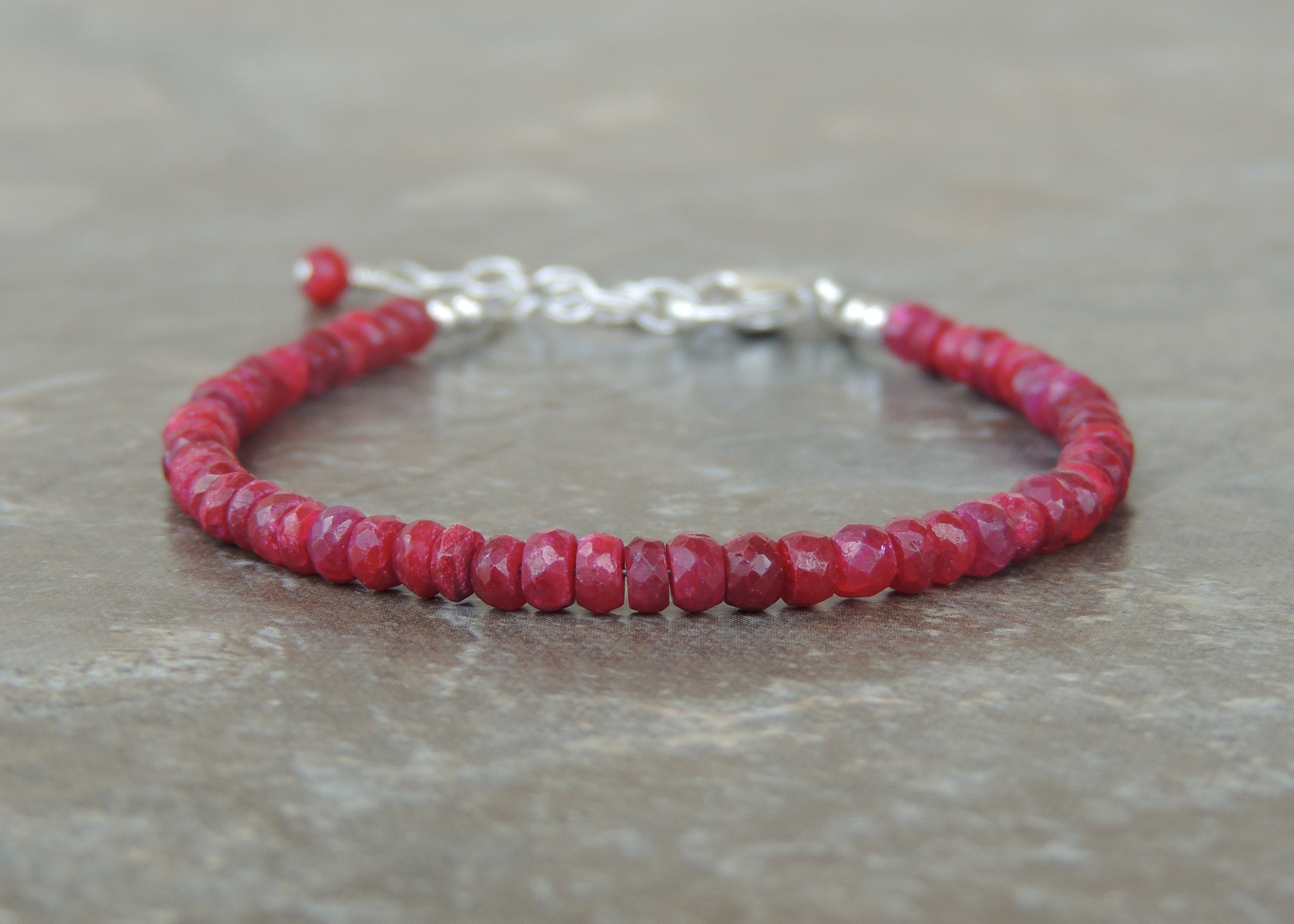 These faceted Ruby Rondelles have a natural and raw beauty to them - I love the rustic feel they give to this piece. Ruby is the birthstone for July so this piece would make a great gift for a July Birthday! Handmade in Dallas, Texas and finished with sterling silver findings.